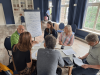 Na een welkom en introductie volgde al snel de eerste opdracht; een high- en no-tech lab omschrijven. Of te wel, een living lab met maximale technologie en een variant met minimale technologie. We gingen flink out-of-the-box brainstormen in drie groep. Om 10:30u was er tijd voor een koffie/ thee pauze waarin de consortiumleden konden bijpraten.